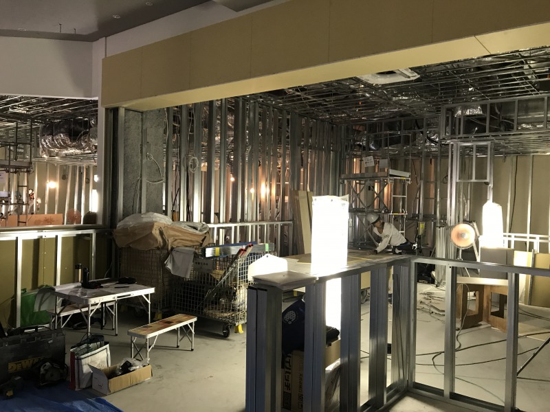 日進市店舗設計日進市赤池の飲食店の店舗デザインをお手伝いしています。プラスターボード張りと電気配線工事を行なっています。 プラスターボードとは、耐火、防火、遮音、断熱性能があり、室内の壁や天井の、仕上の下地材として使用されるものです。 Related Posts2018-05-24プロの仕事お店作りのお手伝いをさせて頂いた、[mine]で2次会用の宣材写真の撮影があったので見学させてもらいました。2018-05-23刺激もらいました普段同業の方と喋る機会は少ないですが、同世代のデザイナーと喋る機会があり、いろいろ刺激を受けました。2018-05-23天ぷら酒場KITSUNE 現場確認天ぷら酒場KITSUNEの現場確認を行いました。2018-05-22ホームページ制作進行中進行中のホームページ制作。本日はデザインと掲載内容の確認を行いました。2018-05-18新プロジェクト現地調査新プロジェクトの現調で阿久比の方へ行ってきました。2018-05-17建具の板金貼り引戸に板金貼りを行いました。2018-05-15ショップカードANDGOのショップカードが完成しました。2018-05-15塗装サンプル作成中塗装のサンプルを作成中です。2018-05-14まずは採寸から進行中の案件で使用する自転車スタンド。2018-05-12手書きパースANDGOではイメージを伝える手段として手描きパースを大事にしています。PrevBlogNext