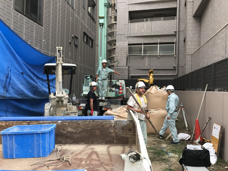 今日は、地盤改良の作業の確認をしてきました。