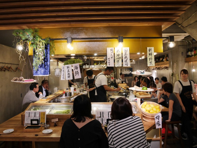 今後の店舗作りの参考になりそうなお店の視察終わりに、店舗デザインをさせていただいた「天ぷらスタンド KITSUNE 」さんにお邪魔しました。
