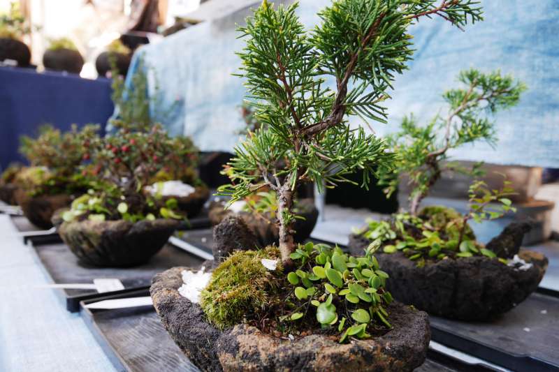 こちらは、漆を塗ってツヤをだしたお箸と現代風のおしゃれな盆栽。